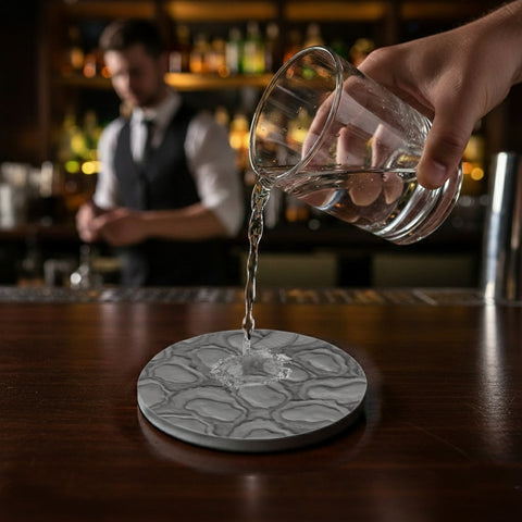McCarter Coasters naturally absorb moisture while the cork feet protect your furniture. All the moisture disappears and the coaster will never stick to your glass. The fine textured detail is embossed giving them dimension, and the natural color goes with any decor.